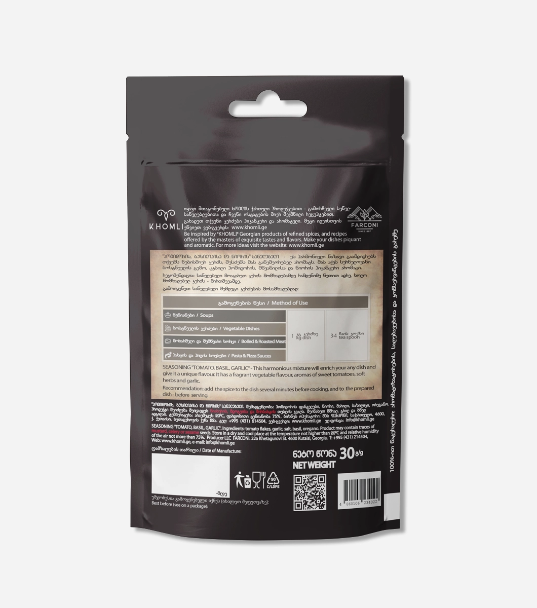 პომიდორის, ბაზილიკისა და ნიორის სანელებელი